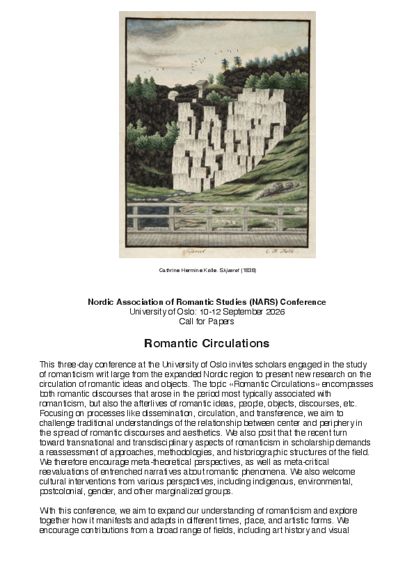 Nordic Association for Romantic Studies (NARS) conference 2026: Romantic Circulations.